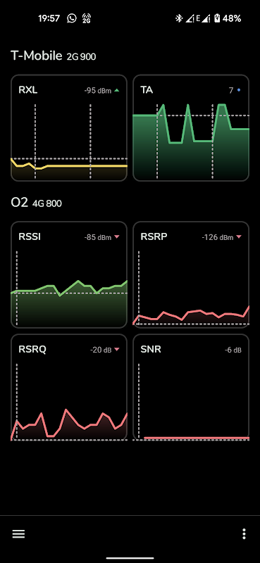 يتصور NetMonster أيضًا تغيرات الإشارة ويقدم وصفًا موجزًا لما يعنيه القياس المحدد وكيف يؤثر على جودة الاستقبال أو السرعة القصوى النظرية.