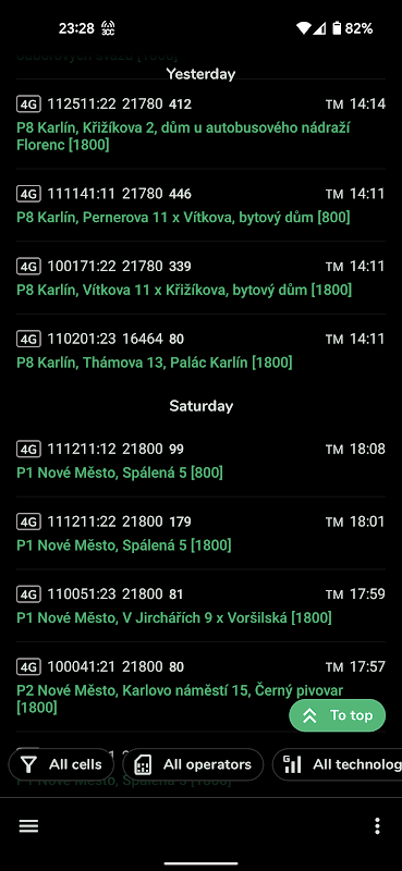 يتم حفظ جميع الخلايا التي يتصل بها هاتفك بشكل نشط في السجل بشكل مستمر حتى تقوم بإنهاء التطبيق. يمكنك تصحيح الموقع يدويًا وتصفح الخلايا على الخريطة وتصفيتها وتصدير جميع البيانات في النهاية.