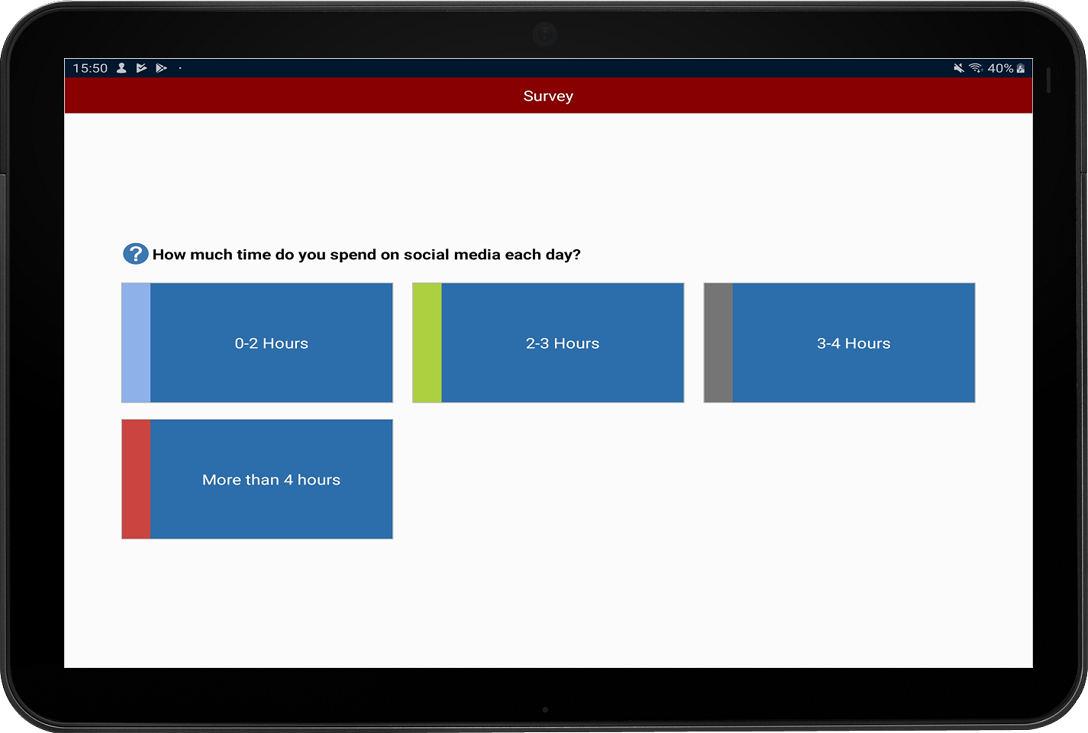 · استفتاء الفصل: كجزء من تقييم الطلاب والغرف الدراسية، يمكن للمعلم إجراء استفتاء سريع لقياس معرفة الطلاب واستيعابهم. ويتمكن الطلاب من الاستجابة في الوقت الحقيقي على الأسئلة المطروحة، ومن ثم يمكن للمعلم عرض النتائج للفصل بأكمله، بما يتيح للطلاب التعرف بشكل فوري على ما تم إنجازه حتى حينه.
