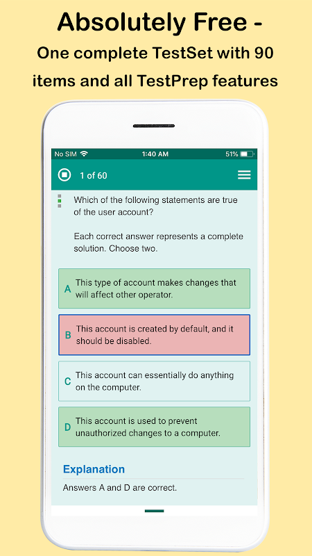 تم تصميم أسئلة uCertify TestPrep بواسطة خبراء متخصصين يضمنون أن المتعلمين يستعدون في ظل ظروف الاختبار الفعلية باستخدام أنواع العناصر المتوقع ظهورها في اختبار الشهادة الفعلي. بحاجة الى مساعدة بخصوص ميزاتنا؟ يرجى الاتصال https://www.ucertify.com/support.php مع استفساراتك أو اقتراحاتك. نحن متواجدون 24 × 7!