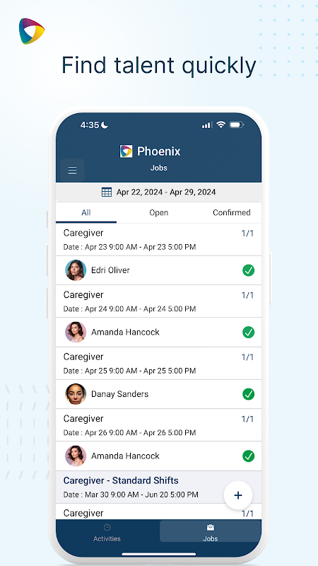 • طلب وظائف بسرعة: يمكنك بسهولة طلب موظفين إضافيين أو ملء الورديات المفتوحة ببضع نقرات بسيطة على جهازك المحمول، مما يضمن تزويد فريقك دائمًا بكامل الموظفين.