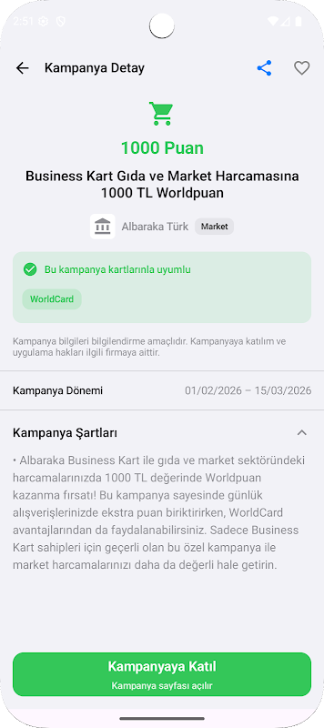 Recommends the most advantageous campaigns based on your shopping habits and performs card-based filtering.
