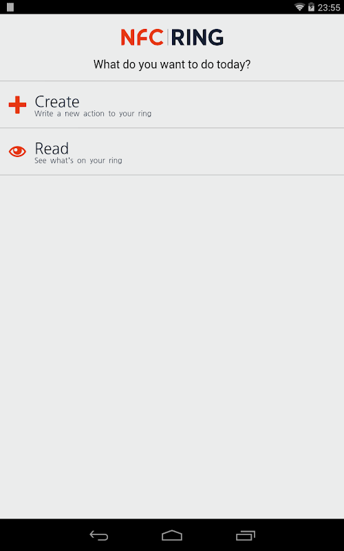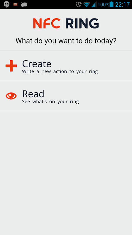 اقرأ من واكتب إلى NFC Ring®. قم بإنشاء روابط لملف تعريف الشبكة الاجتماعية المفضل لديك أو اقرأ NFC Ring® الحالي.