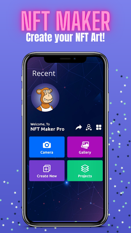 يتيح لك NFT Creator - NFT Art Maker من Alpha Tech إنشاء أعمال فنية رقمية بسهولة وتحويلها إلى NFTs