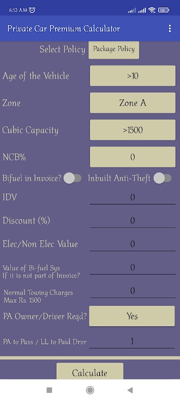 الهند الجديدة للتأمين للسيارات قسط حاسبة - تطوير: براشانث Komarraju