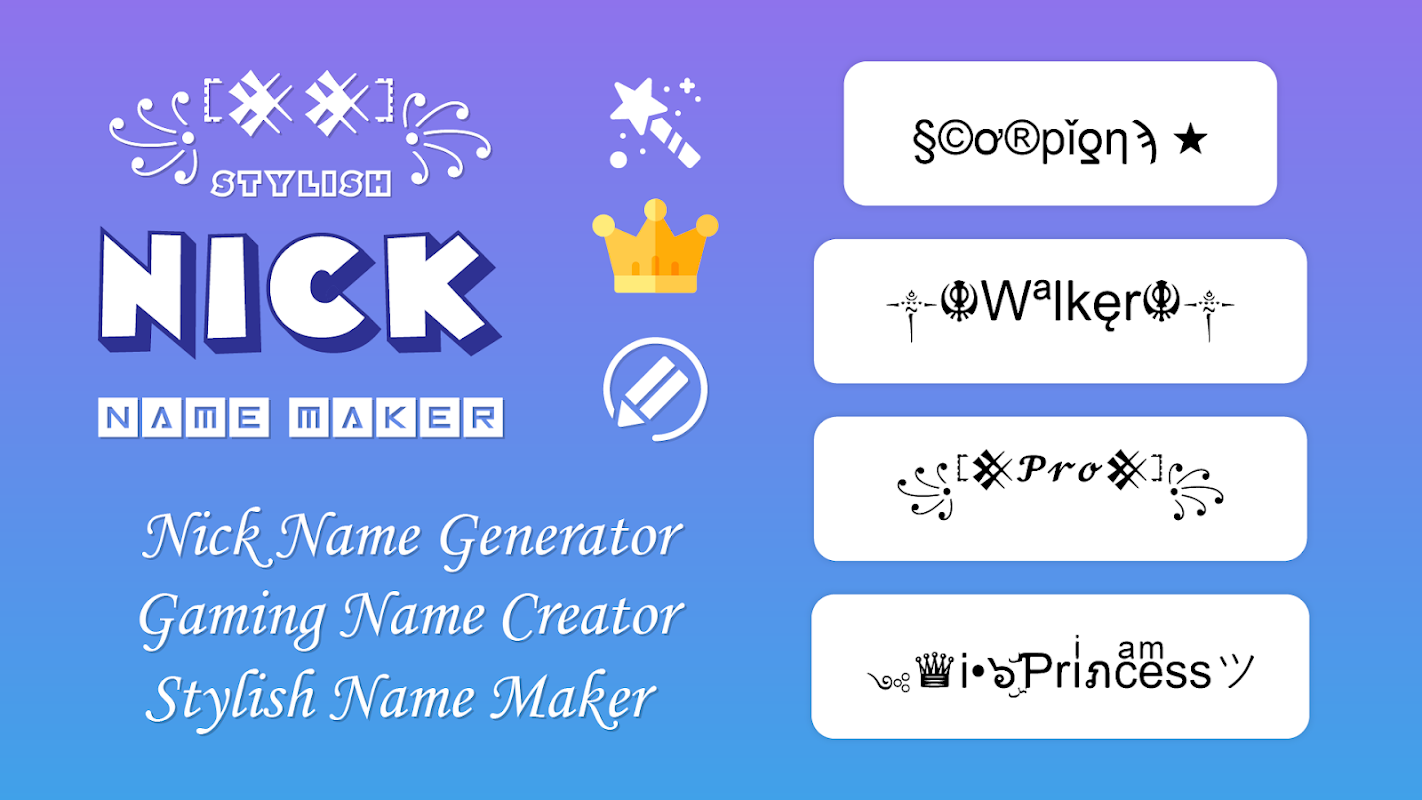 هل تحتاج إلى أسماء خاصة لألعابك؟ هل ترغب في جعل اسمك أو لقبك يبدو رائعًا؟ إذا كنت تحب ممارسة الألعاب كثيرًا وتريد اسمًا رائعًا، أو إذا كنت ترغب فقط في جعل ملفات التعريف الاجتماعية الخاصة بك أكثر إثارة للاهتمام، فيمكن أن يساعدك تطبيق "Nickname Creator & Name Maker" في التوصل إلى أسماء رائعة ومبتكرة. إذا كنت تحب جعل الأشياء تبدو جميلة، فيمكن أن يساعدك هذا التطبيق الرائع لنمط اسم منشئ اللقب على تحويل اسمك إلى خط رائع ورائع حقًا.