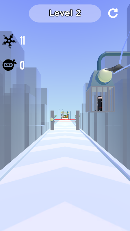 قم بإنقاذ النينجا المحبوسين عن طريق رمي الشوريكين. اقضِ shuriken المحدود بعناية وانتهي من المستوى.