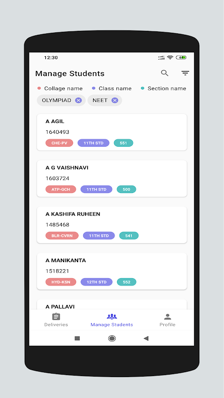 ب) يمكنك تصفية الطلاب باستخدام الكلية والفصل والدفعة والدفعة الفرعية
