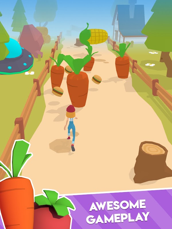 لقد جنّت الخضراوات وتريد اللحاق بك. اركض في المزرعة وتجنب الخضراوات القادمة. التهم كل البرغر في طريقك.