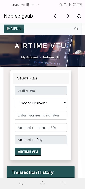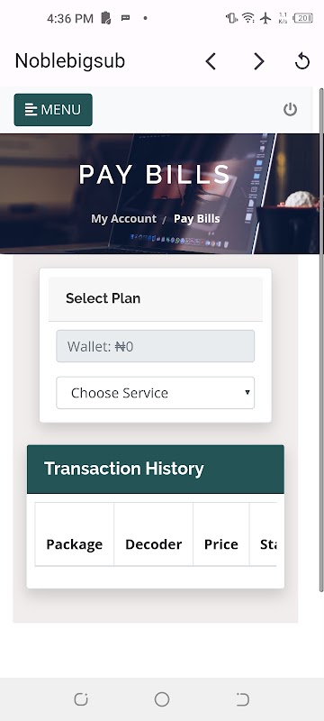 Noblebigsub هي شركة اتصالات تتعامل مع الاشتراك في فواتير البيانات وتلفزيون الكابل والكهرباء ووقت البث VTU والتعليم.