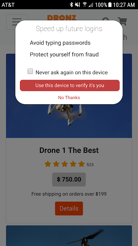 يسمح لك Nok Nok ™ ShopAuth بالتحقق من صحة تثبيت Fast Identity Online (FIDO). FIDO هو بروتوكول مصادقة حديث أنشأه FIDO Alliance. يعتمد على تشفير المفتاح العام ويمكن استخدامه مع أي طريقة مصادقة تقريبًا مثل القياسات الحيوية لبصمات الأصابع والقياسات الحيوية للوجه والقياسات الحيوية الصوتية. طرق المصادقة ، المعروفة باسم المصادقة في FIDO ، تستبدل كلمات المرور بآليات تسجيل دخول أكثر أمانًا وقابلة للاستخدام.