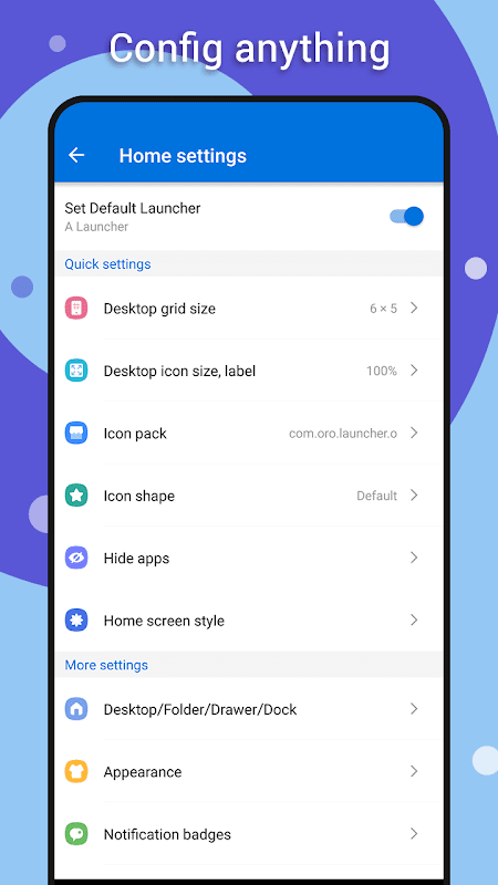 + يمكنك تكوين شبكة رمز launher ، وحجم الرمز ، وتسمية الرمز ، وخلفية درج المشغل ، وما إلى ذلك