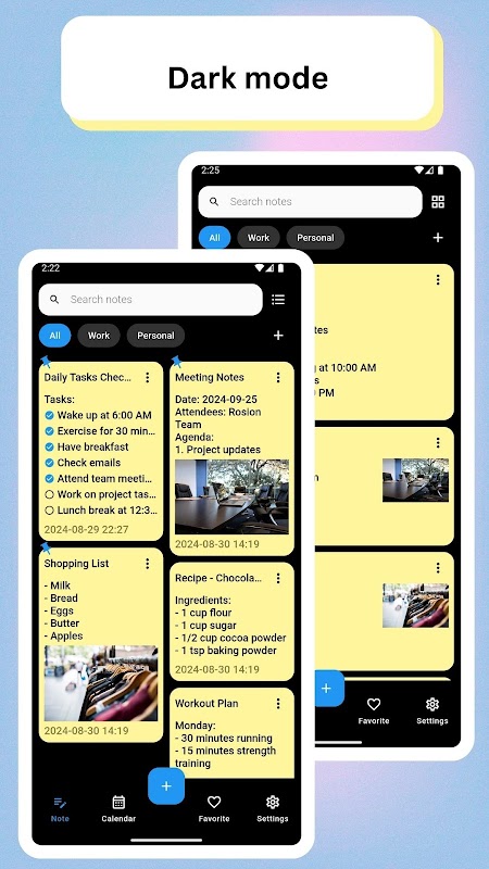 * المفضلة والتثبيت: قم بتمييز الملاحظات المهمة كمفضلة أو قم بتثبيتها في الأعلى للوصول السريع إليها. لا تفقد أبدًا معلوماتك الأكثر أهمية.