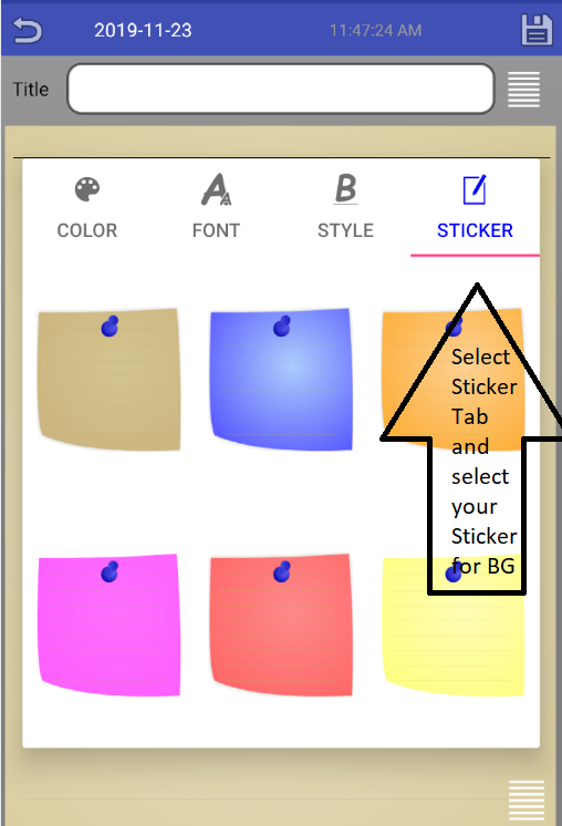باستخدام Notebook - Notepad ، يمكنك تغيير لون الخط وتنسيق النص بالكامل: غامق أو مائل أو تسطير أو تغيير حجم الخط بشكل أكبر وأصغر بطريقة احترافية.
