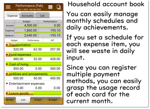 ・ يمكنك بسهولة تسجيل الدخل والنفقات اليومية الخاصة بك.