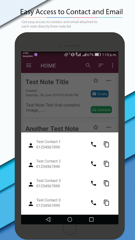 Notepad - Contact, Email,Image and Audio Note is a notepad app for android. It is a free notepad app to download and use. It helps you to organize your day by day notes easily and more conveniently. This notepad app provides a wide range of functionalities those make it a multipurpose notepad app. If you want to keep track of different important fact this notepad app can be the best choice for you. Although it is notepad app, from it’s multiple functionalities it can be used as notebook app, checklist app to create checklist, shopping list etc, todo app to note down upcoming events or meeting, contact notes, email notes, voice notes, image notes etc.