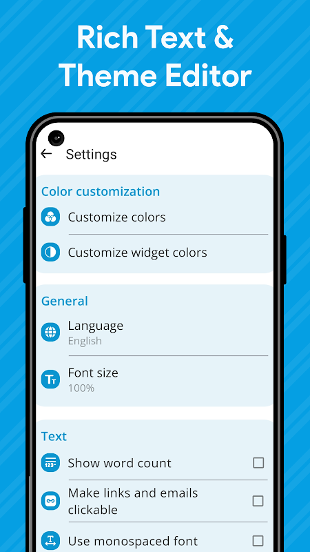 ابق على اطلاع على المهام بسهولة باستخدام منظم Notes البسيط وأداة تدوين الملاحظات الملونة. لا تفوت أي تفاصيل مهمة أو قوائم التسوق مرة أخرى - كل شيء في متناول يدك.