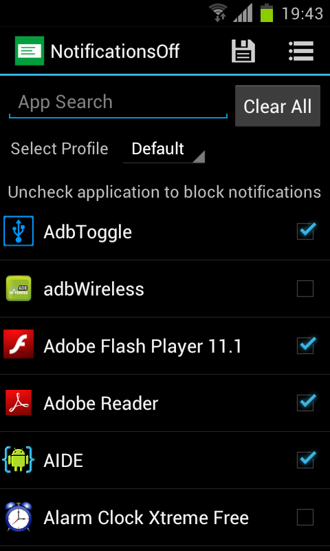 مطفئ التنبيهات يمكنه ايضا غلق جميع التنبيهات تلقائيا لأي تطبيقات جديدة بعد تركيبها.