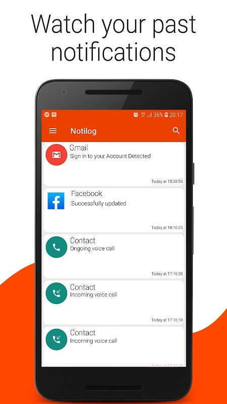 Notilog let you log every single notification! You can look back to past notifications, even the ones that disappeared before you could read them!