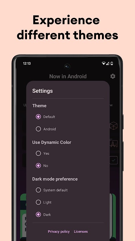 التطبيق قيد التطوير حاليًا ، يمكنك العثور على كود المصدر المقابل على https://github.com/android/nowinandroid