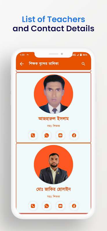 2. قائمة المعلمين وأرقام الاتصال: ابق على اتصال مع أعضاء هيئة التدريس في مدرستك. الوصول إلى تفاصيل الاتصال للمعلمين والموظفين.