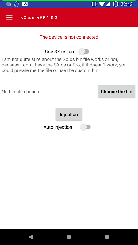 يمكن لهذا التطبيق حقن Switch bin باستخدام كابل USB مع Android Mobile الخاص بك.
