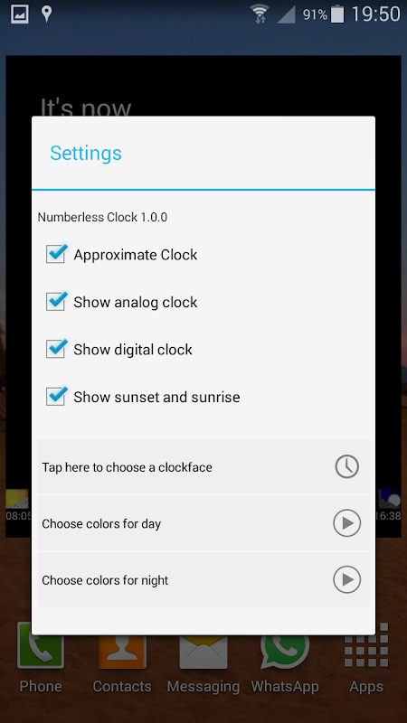 "Numberless Clock" is a simple clock showing the time and date in words as an Android Widget. This clock does not run as an application, but as a widget on your desktop! The widget is resizable.
