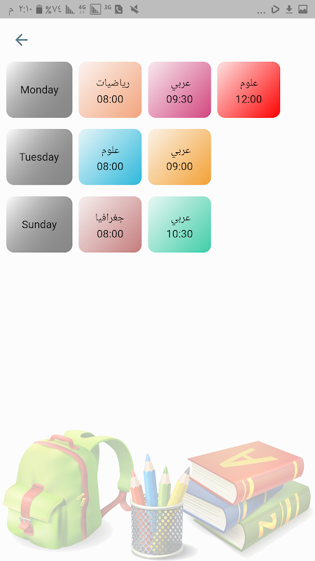 • جدول الأسبوع مع تفاصيل الحصص الفعلية