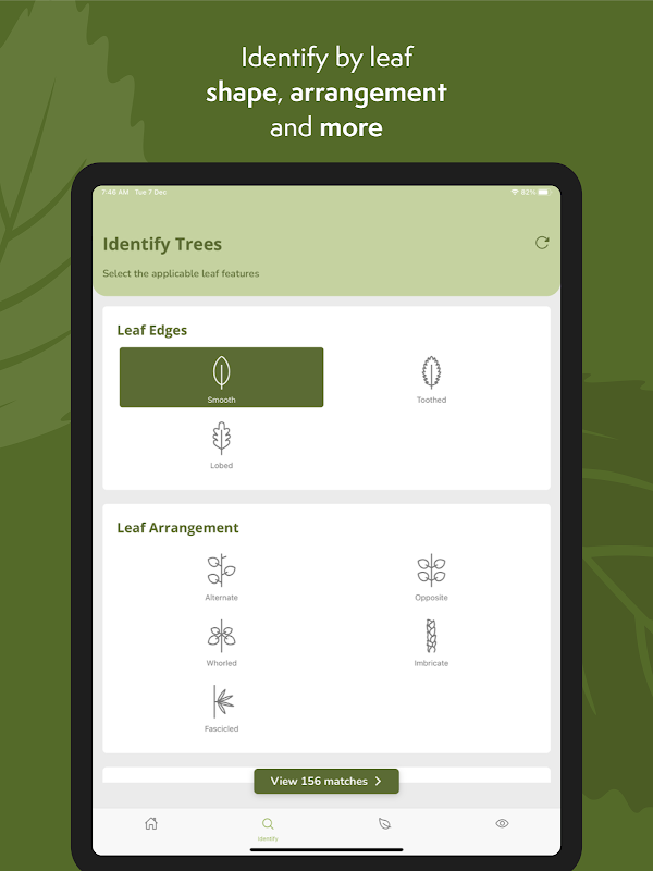يأتي التطبيق مع معالج سهل الاستخدام من نوع "الاختيار من متعدد" ، وقائمة بالأنواع A-Z وخيار التقاط وحفظ ومشاركة مشاهدك الخاصة.