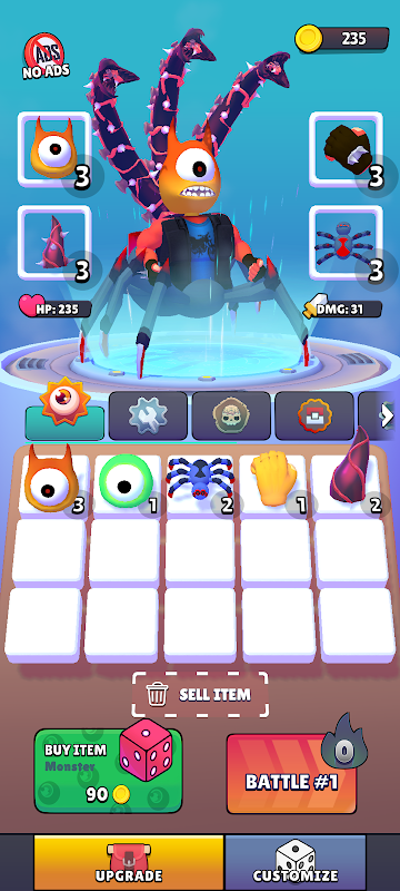 فن الدمج: هذه ليست مجرد لعبة دمج. هنا، يمكنك تفكيك العناصر وإعادة دمجها لإنشاء مجموعات أقوى. جرّب بحرية لتعظيم مهاراتك ومعداتك، وتأكد من أن وحشك جاهز للمبارزة التالية. امزج ووفق بين الأسلحة والدروع والتحسينات - مثل العيون الإضافية 👁، والمخالب القوية 🐙، أو القبضات الساحقة 👊 - للعثور على الإعداد المثالي للمعركة.