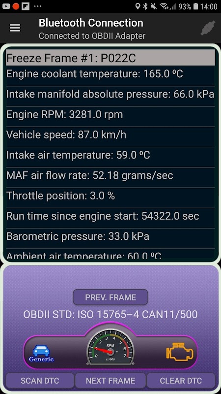 * إمكانية قراءة بيانات الإطار المجمد (قيم المستشعرات عند تخزين أكواد أعطال التشخيص) وقراءة البيانات الحية باستخدام عدة عدادات تناظرية لعرض قيم المستشعرات على شاشة واحدة