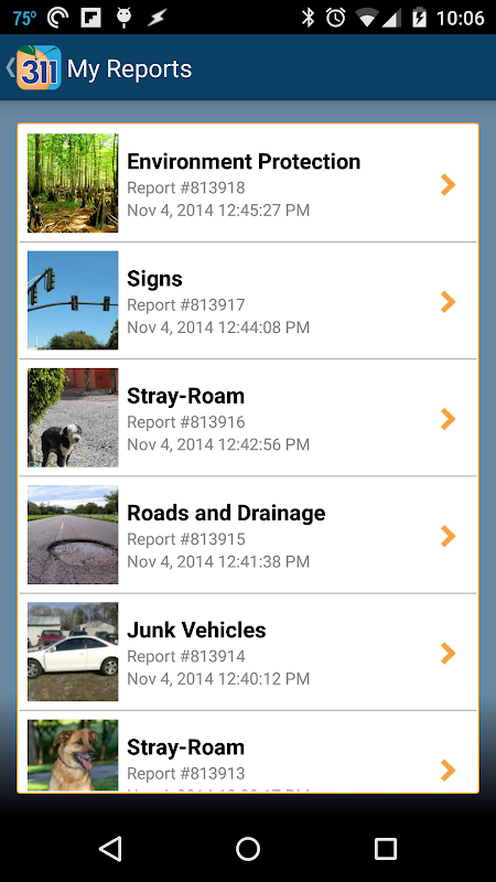 سكان OCFL 311 تمريرة مقاطعة أورانج فلوريدا للإبلاغ عن قضايا المجتمع غير الطارئة المحلية بشكل ملائم وبكفاءة عن طريق تقديم التقارير بشأن الحيوانات، علامات المرور، والحفر والكتابة على الجدران، وإصلاح الرصيف، والعديد من القضايا المشتركة الأخرى. العديد من هذه التقارير يمكن تقديمها بسرعة ومجهولة. السكان الذين يقدمون معلومات الاتصال بهم يمكن عرض حالة تقاريرها لضمان حل مناسب. أيضا، OCFL 311 مريح خرائط المواقع من القضايا المجتمعية الهامة حتى سكان يمكن أن يكون على بينة من الأحداث التي قد تؤثر حيهم.