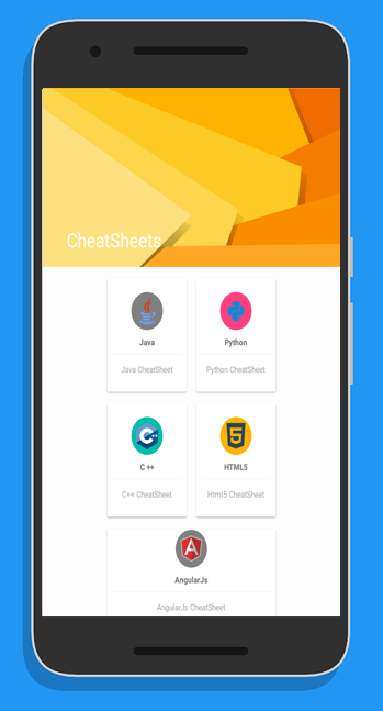هذا التطبيق يحتوي على CheatSheets للجافا، بيثون، C ++، AngularJs، HTML 5