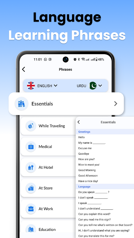مترجم ضروري للسياح. وأداة مثالية للطلاب لتعلم اللغات الجديدة. يعمل أيضاً كقاموس يومي.
