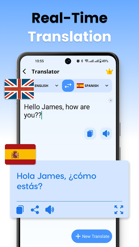 تحدث بشكل طبيعي واحصل على ترجمات فورية. مثالي للسفر، الدراسة واجتماعات العمل. يمكنك أيضاً استخدام مترجم الدردشة للتواصل مع الأصدقاء حول العالم.