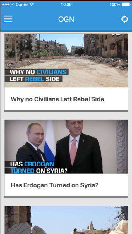 OGN هو فريق الأخبار الغربي الوحيد الذي يقدم تقارير مباشرة من داخل سوريا.