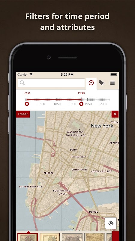 البحث في أي مكان في العالم بالاسم، أو لمجرد التكبير وعموم، للحصول على الخرائط القديمة أدق على الفور. تمرير شريط مع النتائج وزيارة تلك تريد. وتعتمد على الموقع جميع الخرائط واردة والتطبيق يمكن عرض الخرائط ذات الصلة وفقا لمكان حيث تظهر، بغض النظر إذا كان نيويورك ولوس أنجلوس ولندن وباريس وبرلين وطوكيو، روما، سان فرانسيسكو أو أي مدينة أخرى في العالم. تحميل التطبيق خرائط قديم الآن وتمتع لمسة من التاريخ في يدك!