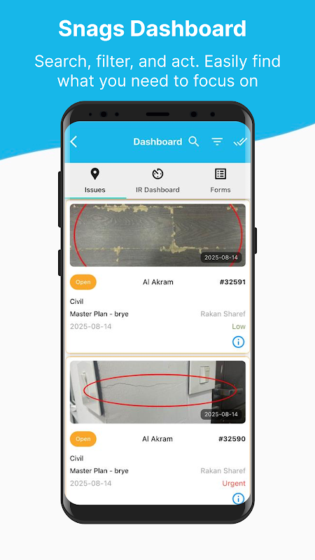 تم تصميم Onsite للتواصل السلس، حيث يربط العملاء ومديري الموقع والمقاولين من الباطن من خلال الأجهزة المحمولة، مما يضمن عمليات فحص عالية الجودة وفعالة وتحديثات في الوقت الفعلي عبر جميع مستويات المشروع.