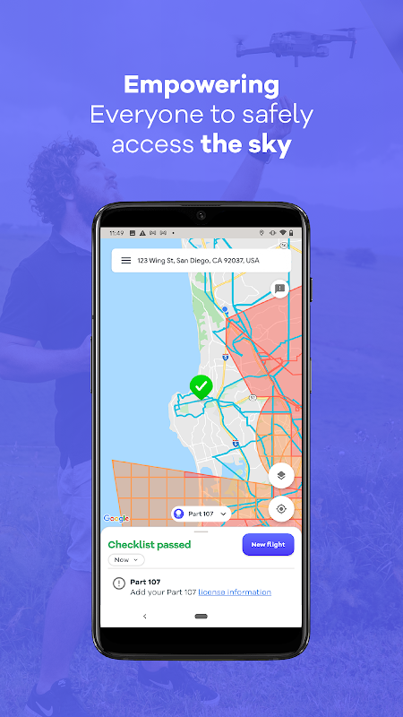 التطبيق المعتمد لـ Drone Flyers مع الخرائط وقواعد المجال الجوي وتراخيص LAANC