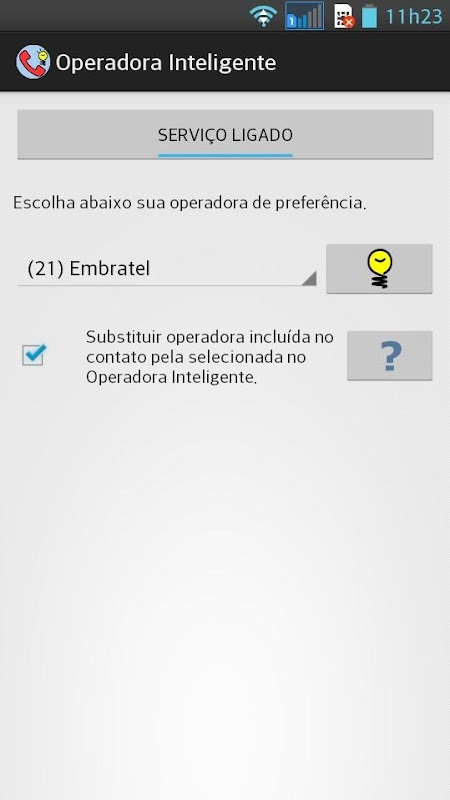 * Em celulares com mais de um chip, o Operadora Inteligente só reconhece o chip 1, mas usa a opção selecionada para todas as ligações, independente de qual chip está sendo usado.