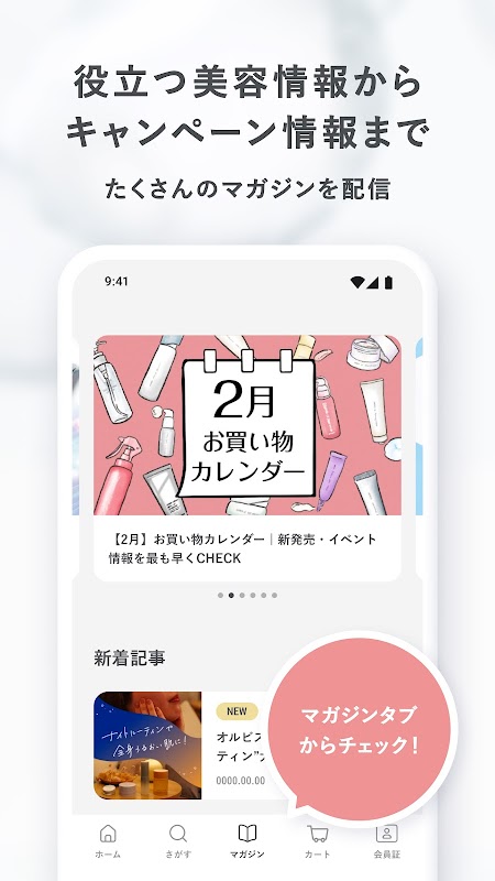 اطلع على أحدث المعلومات، بما في ذلك المنتجات الجديدة شهريًا والتصنيفات، مباشرةً من الشاشة الرئيسية. لن تفوتك أبدًا معلومات الحملات والعروض الحصرية! يمكنك أيضًا العثور على المنتجات التي اشتريتها سابقًا وشرائها بسرعة من شاشة "إعادة الشراء"!