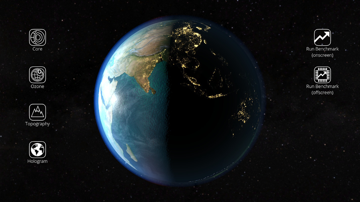 While on-screen Benchmark Mode is limited to the native resolution of your device, with off-screen Benchmark Mode you can measure performance rendering at 4K resolution ! This makes it easier to compare devices for performance in the same conditions, and shows how your device would perform if it were to output to a 4k TV for example.