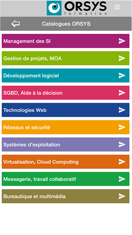 Spécialiste de la formation professionnelle, ORSYS propose cette application permettant de consulter les plus de 1000 cours du catalogue.