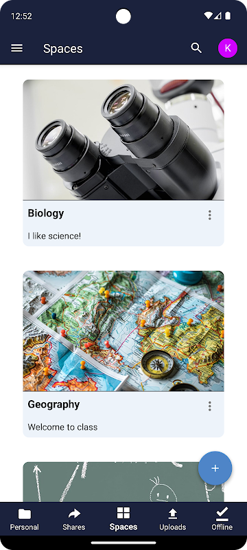 باستخدام تطبيق Cloud Android الخاص بك ، يمكنك تصفح جميع ملفاتك التي تمت مزامنتها على Cloud ، وإنشاء ملفات جديدة وتحريرها ، ومشاركة هذه الملفات والمجلدات مع زملاء العمل ، والحفاظ على مزامنة محتويات هذه المجلدات عبر جميع أجهزتك. ما عليك سوى نسخ ملف إلى دليل على الخادم الخاص بك ويقوم ownCloud بالباقي.