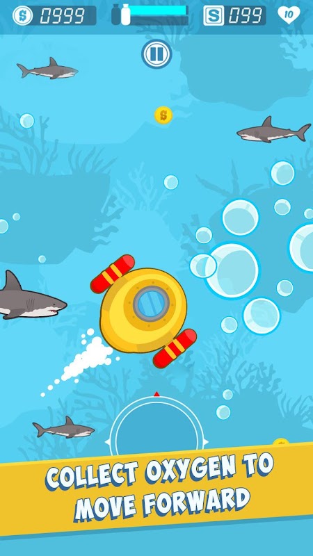 حاول أن تذهب إلى أقصى حد ممكن. لكن لا تنس أن تنظر حولك: تجنب أسماك القرش الغاضبة تحاول ضربك! ليس لديك أسلحة لذا فإن الطريقة الوحيدة للبقاء على قيد الحياة هي التحرك بشكل أسرع وجعل أسماك القرش تصطدم ببعضها البعض.