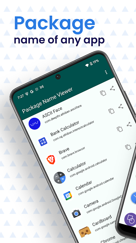 يتيح لك التطبيق البسيط معرفة اسم حزمة التطبيق ومشاركته.