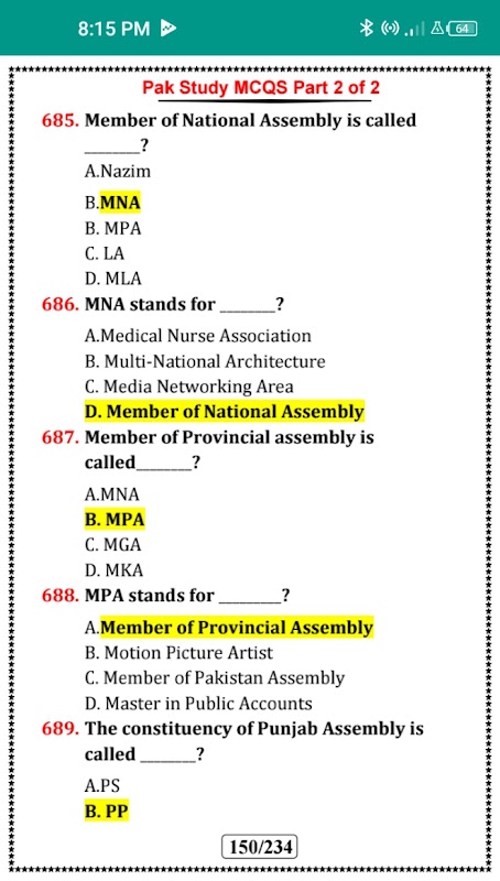 Pak Study MCQs offline 15