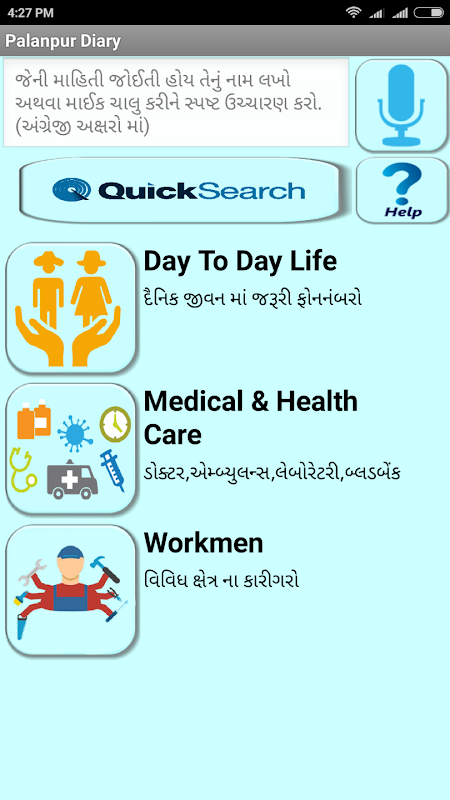 يتكون تطبيق بالانبور يوميات مفيد، مفيد، في حالات الطوارئ، وأرقام الهواتف الهامة.