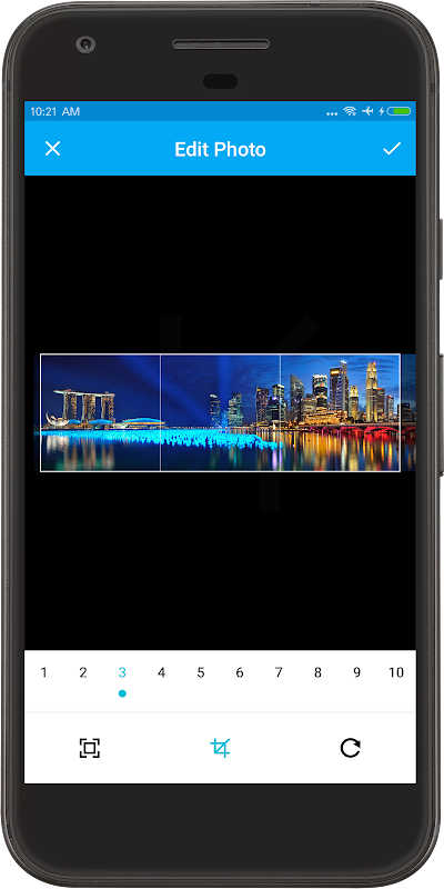 ▸ قسّم البانوراما تلقائيًا إلى قطع مربعة.