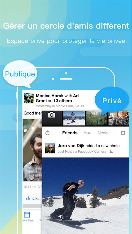 - L'espace double exécutera deux comptes simultanément sur votre téléphone, vous pourrez facilement les changer avec une seule touche, puis gérer efficacement différents comptes.